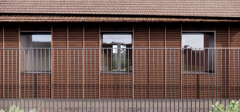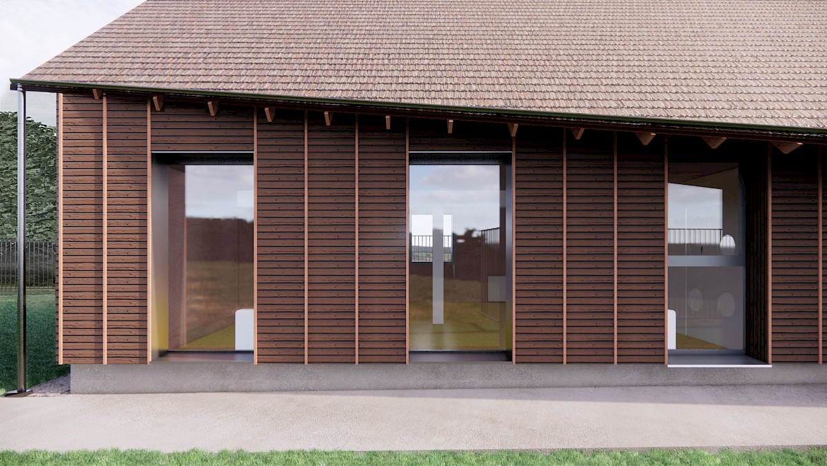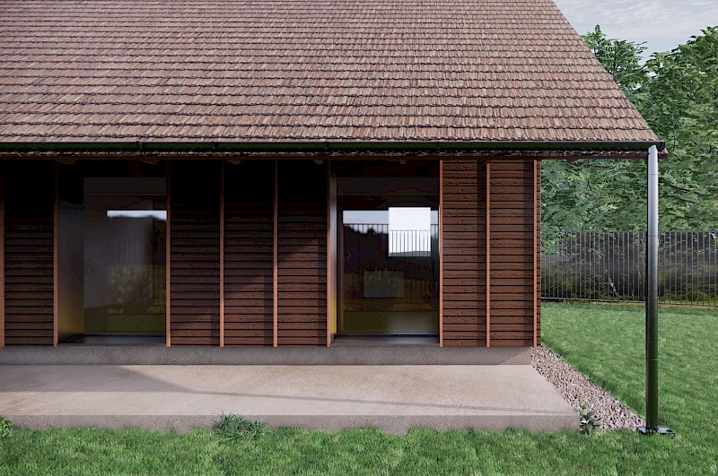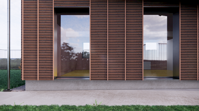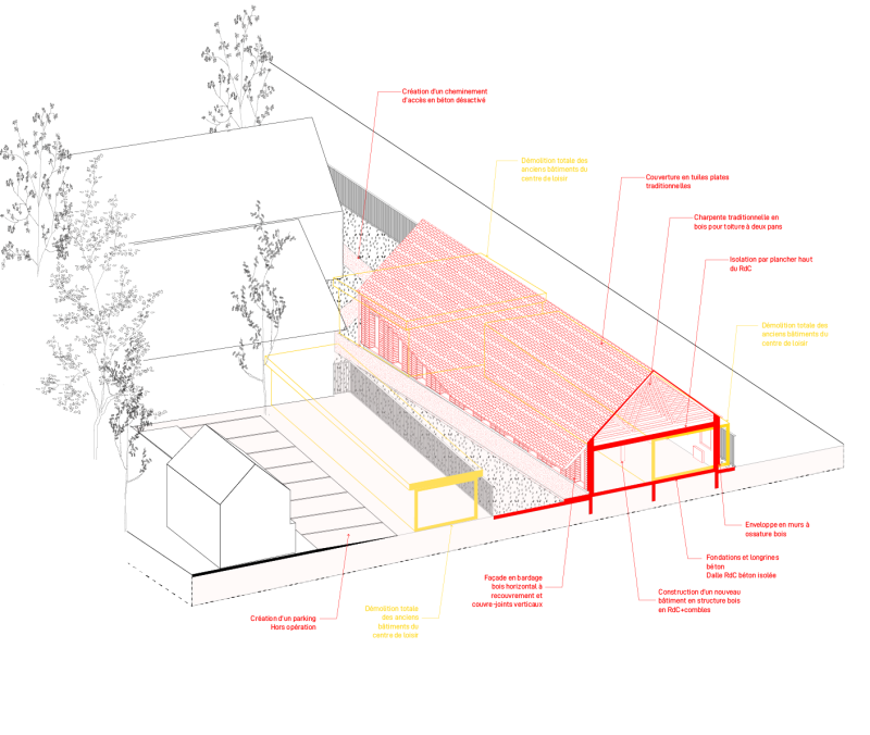 La structure du préau se continue au-dessus du modulaire, afin de créer un tampon thermique. La structure décollée du sol permet de minimiser l’imperméabilisation des sols. Ces principes assurent d’autant plus la pérennité des nouveaux modules. Le principe constructif peut contenir deux scenario possibles, selon la capacité souhaitée.