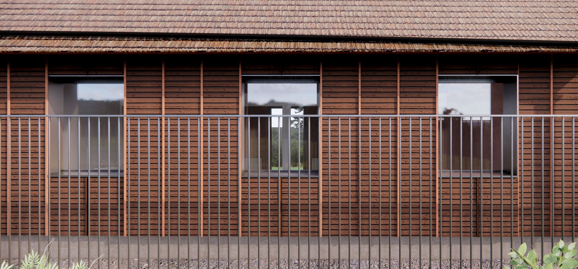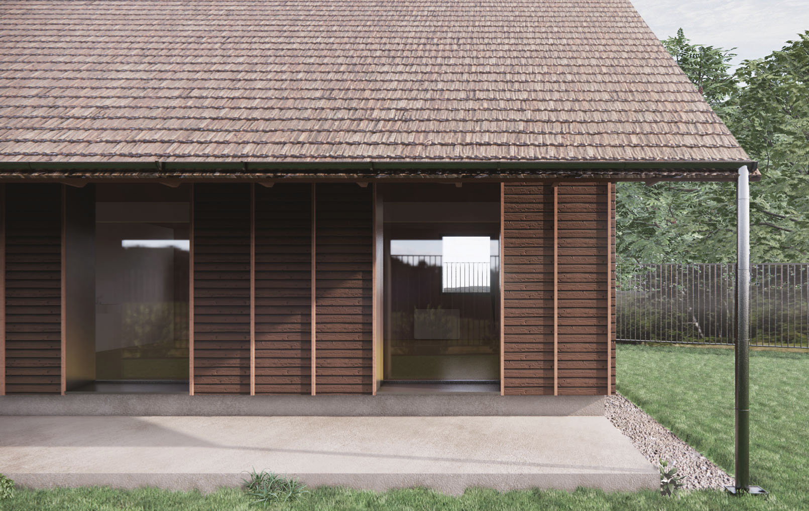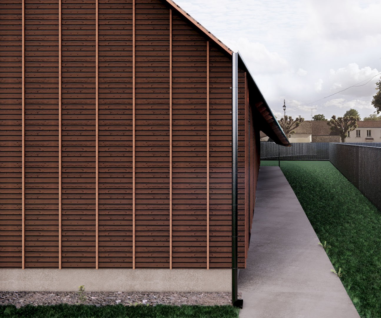 La structure du préau se continue au-dessus du modulaire, afin de créer un tampon thermique. La structure décollée du sol permet de minimiser l’imperméabilisation des sols. Ces principes assurent d’autant plus la pérennité des nouveaux modules. Le principe constructif peut contenir deux scenario possibles, selon la capacité souhaitée.